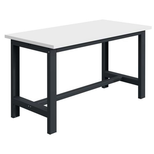 Robuuste werkbank die een belasting van 1500 kg kan dragen. Horizontale dwarsbalk voor extra stabiliteit en kan als voetsteun worden gebruikt. Resitop laminaat werkblad met hoge thermische weerstand en vlamvertraging M3.