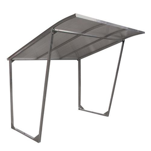 Fietsenstalling met halfdoorzichtig dak van polycarbonaat. Grote aflopende beschermstrook aan de voorzijde. Solide dubbelwandig dakpaneel (10 mm). Wordt geleverd zonder zijwanden. Bevestiging van stalling met pluggen van het type Spit. Geleverd zonder fietsenrekken. Zijwanden en achterwanden moeten apart besteld worden.