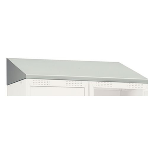 Stofkap voor garderobekast 1 tot 4 kolommen Seamline®, Type accessoire voor garderobekast: Kap, Voor model: Garderobekast Seamline® 3 of 4 kolommen breedte 300/400 mm, Aantal kastkolommen: 4, Materiaal: Staal, Hoogte: 210 mm, Breedte: 1200 mm, Diepte: 500 mm, Coating: Epoxy, Kleur: Lichtgrijs, RAL: 7035, Recyclebare verpakking: Ja - 100%, Gerecyclede verpakkingen: 40 %, Recyclebaar product: Ja - 100%, Gerecycled product: 39 %, Eco-verantwoordelijke aanpak: ja, Plaatstaal dikte: 12/10de, Type: Schuine kap