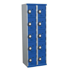 Garderobekast 10 vakken Seamline Optimum®, Type garderobekast: Met vakken, Materiaal: Staal, Aantal vakken/kolom: 5, Aantal kastkolommen: 2, Onderstel: Op sokkel, Breedte kolom: 300 mm, Aantal kubusvakken: 10, Type sluiting: Met code, Hoogte: 1800 mm, Breedte: 600 mm, Diepte: 500 mm, Plaatstaal dikte: 6/10de, Coating: Epoxy, Kleur ombouw: Lichtgrijs, Kleur deur: Blauw, RAL: 7035 5017, Geleverd gemonteerd: ja, Recyclebare verpakking: Ja - 100%, Gerecyclede verpakkingen: 40 %, Recyclebaar product: Ja - 100%, Gerecycled product: 38 %, Eco-verantwoordelijke aanpak: ja, Gewicht: 51 kg, Type: Uit één stuk, NF Milieu: nee, NF: nee