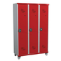 Garderobekast 3 kolommen Seamline Optimum®, Type garderobekast: Met vakken en garderobe, Materiaal: Staal, Aantal kastkolommen: 3, Onderstel: Op poten, Type sluiting: Met sleutel, Hoogte: 1925 mm, Breedte: 1200 mm, Breedte kolom: 400 mm, Diepte: 500 mm, Plaatstaal dikte: 6/10de, Coating: Epoxy, Kleur ombouw: Lichtgrijs, Kleur deur: Rood, RAL: 7035 3003, Geleverd gemonteerd: ja, Garderobekast gebruiksomgeving: Zware industrie, Recyclebare verpakking: Ja - 100%, Gerecyclede verpakkingen: 40 %, Recyclebaar product: Ja - 100%, Gerecycled product: 36 %, Eco-verantwoordelijke aanpak: ja, Gewicht: 78 kg, Aantal vakken: 3, Type: Eén unit, NF Milieu: nee, NF: nee, NF Techniek: nee
