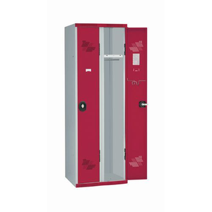 Garderobekast 2 kolommen Seamline Optimum®, Type garderobekast: Met vakken en garderobe, Materiaal: Staal, Aantal kastkolommen: 2, Onderstel: Op sokkel, Breedte kolom: 300 mm, Type sluiting: Met hangslot, Hoogte: 1800 mm, Breedte: 600 mm, Diepte: 500 mm, Plaatstaal dikte: 6/10de, Coating: Epoxy, Kleur ombouw: Lichtgrijs, Kleur deur: Rood, RAL: 7035 3003, Geleverd gemonteerd: ja, Garderobekast gebruiksomgeving: Lichte industrie, Recyclebare verpakking: Ja - 100%, Gerecyclede verpakkingen: 40 %, Recyclebaar product: Ja - 100%, Gerecycled product: 36 %, Eco-verantwoordelijke aanpak: ja, Gewicht: 41 kg, Aantal vakken: 2, Type: Uit één stuk, Breedte opening: 230 mm, NF Milieu: nee, NF: nee, NF Techniek: nee