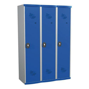 Garderobekast 3 kolommen Seamline Optimum®, Type garderobekast: Met vakken en garderobe, Materiaal: Staal, Aantal kastkolommen: 3, Onderstel: Op sokkel, Type sluiting: Met hangslot, Hoogte: 1800 mm, Breedte: 1200 mm, Breedte kolom: 400 mm, Diepte: 500 mm, Plaatstaal dikte: 6/10de, Coating: Epoxy, Kleur ombouw: Lichtgrijs, Kleur deur: Blauw, RAL: 7035 5017, Geleverd gemonteerd: ja, Garderobekast gebruiksomgeving: Zware industrie, Recyclebare verpakking: Ja - 100%, Gerecyclede verpakkingen: 36 %, Recyclebaar product: Ja - 100%, Gerecycled product: 32 %, Eco-verantwoordelijke aanpak: ja, Gewicht: 75 kg, Aantal vakken: 3, Type: Eén unit, NF: nee, NF Techniek: nee