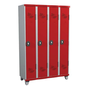 Garderobekast 4 kolommen Seamline Optimum®, Type garderobekast: Met vakken en garderobe, Materiaal: Staal, Aantal kastkolommen: 4, Onderstel: Op poten, Breedte kolom: 300 mm, Type sluiting: Met hangslot, Hoogte: 1915 mm, Breedte: 1200 mm, Diepte: 500 mm, Plaatstaal dikte: 6/10de, Coating: Epoxy, Kleur ombouw: Lichtgrijs, Kleur deur: Rood, RAL: 7035 3003, Geleverd gemonteerd: ja, Garderobekast gebruiksomgeving: Lichte industrie, Recyclebare verpakking: Ja - 100%, Gerecyclede verpakkingen: 40 %, Recyclebaar product: Ja - 100%, Gerecycled product: 36 %, Eco-verantwoordelijke aanpak: ja, Gewicht: 81 kg, Aantal vakken: 2, Type: Uit één stuk, Breedte opening: 230 mm, NF Milieu: nee, NF: nee, NF Techniek: nee