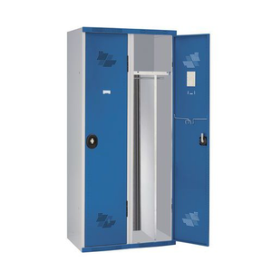 Garderobekast 2 kolommen Seamline Optimum®, Type garderobekast: Met vakken en garderobe, Materiaal: Staal, Aantal kastkolommen: 2, Onderstel: Op sokkel, Breedte kolom: 300 mm, Type sluiting: Met sleutel, Hoogte: 1800 mm, Breedte: 600 mm, Diepte: 500 mm, Plaatstaal dikte: 6/10de, Coating: Epoxy, Kleur ombouw: Lichtgrijs, Kleur deur: Blauw, RAL: 7035 5017, Geleverd gemonteerd: ja, Garderobekast gebruiksomgeving: Lichte industrie, Recyclebare verpakking: Ja - 100%, Recyclebaar product: Ja - 100%, Gewicht: 41 kg, Aantal vakken: 2, Type: Uit één stuk, Breedte opening: 230 mm, NF: nee, NF Techniek: nee