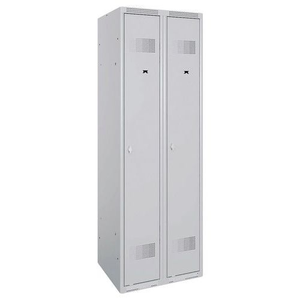 Industriële locker Prima 1 tot 4 koloms, Type garderobekast: Met vakken en garderobe, Materiaal: Staal, Aantal kastkolommen: 2, Onderstel: Op sokkel, Breedte kolom: 300 mm, Aantal deuren: 2, Type sluiting: Met hangslot, Hoogte: 1800 mm, Breedte: 600 mm, Diepte: 500 mm, Plaatstaal dikte: 10/10de, Nuttige hoogte vak: 300 mm, Coating: Epoxy, Kleur ombouw: Grijs, Kleur deur: Grijs, RAL: 7035, Deur RAL: 7035, Geleverd gemonteerd: ja, Etikethouder: ja, Beluchting: ja, Garderobekast gebruiksomgeving: Lichte industrie, Aantal vakken/kolom: 1, Recyclebare verpakking: Ja - 100%, Gerecyclede verpakkingen: 40 %, Recyclebaar product: Ja - 100%, Gerecycled product: 36 %, Eco-verantwoordelijke aanpak: ja, Gewicht: 35 kg, Aantal vakken: 2
