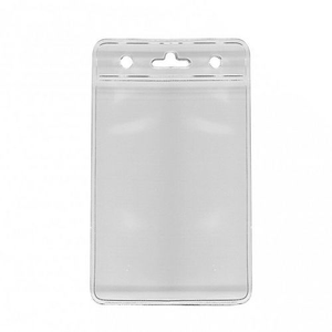 Flexibele professionele badgehouder met verstevigde band. Drie perforaties: twee ronde met een diameter van 5 mm en één langwerpige. Afmetingen badge: 86 x 54 mm (bankpas). Horizontaal model.