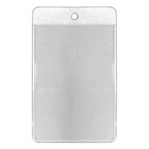 Voordelige badgehouder van transparant pvc met ronde perforatie voor krokodillenclip zonder sleutelkoord. Afmetingen badge: 86 x 54 mm (bankpas). Verkrijgbaar in horizontaal of verticaal model.