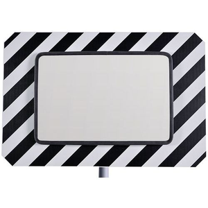Veiligheidsspiegel, Bewakingsradius: 15 m, Vorm: Rechthoek, Zicht: 90 °, Breedte spiegel: 800 mm, Hoogte spiegel: 600 mm, Gebruiksomgeving: Buitenterrein, Spiegel materiaal: Plexiglas, Type: Industriespiegel, Kleur: Zwart/wit