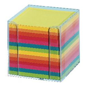 Kubushouder voorzien van gekleurde vulling. Aantal vel: 700. Afmetingen: 95 x 90 x 95 mm (HxBxD). Kleur: Kleurenassortiment.