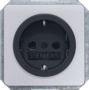 Siemens wandcontactdoos (wcd schakelmat.), zilver, uitvoering overig, 2 actieve contacten (vlak), 1 eenheid, 2 fasen, aansluitwijze steekklem, met verhoogde aanraakbeveiliging, RAL-nummer 9006