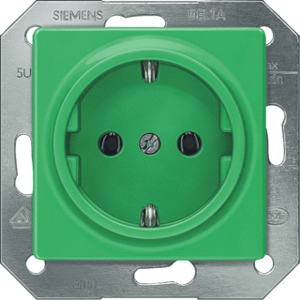 Siemens wandcontactdoos (wcd schakelmat.), groen, uitvoering overig, 2 actieve contacten (vlak), 1 eenheid, 2 fasen, aansluitwijze steekklem, RAL-nummer 6018