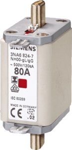 Siemens 3NA6 NH00 smeltpatroon (mes), zekeringmaat volgens IEC 60269 NH00, spanningstype AC/DC, nom. (meet)stroom 125A, nom. (meet)spanning AC 500V, nom. (meet)spanning DC 250V, bedrijfsklasse gL/gG (kabel- en geleider, uitvoering kenmelder combikenmelder, geïsoleerde metalen trekoren (IMGL),