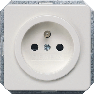 Siemens wandcontactdoos (wcd schakelmat.), wit, uitvoering aardingspen, 2 actieve contacten (vlak), 1 eenheid, 2 fasen, aansluitwijze steekklem, met verhoogde aanraakbeveiliging, RAL-nummer 9010