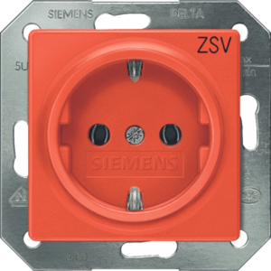 Siemens wandcontactdoos (wcd schakelmat.), oranje, uitvoering overig, 2 actieve contacten (vlak), 1 eenheid, 2 fasen, opdruk/indicatie ZSV, aansluitwijze steekklem, met verhoogde aanraakbeveiliging, RAL-nummer 2004
