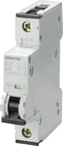 Siemens 5SY6 installatieautomaat, inbouwdiepte 70mm, uitschakelkarakteristiek C, 1 polen (totaal), 1 beveiligde polen, nom. (meet)stroom 6A, nom. (meet)spanning 400V, spanningstype AC, nom. isolatiespanning Ui 440V, nom. stoothoudspanning (Uimp) 4kV, nom. afschakelvermogen IEC 60947-2 30kA,
