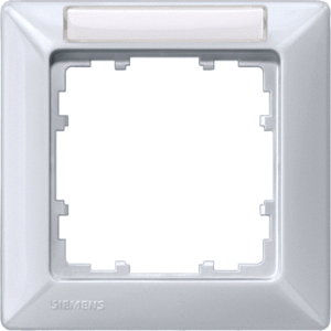 Siemens afdekraam schakelmateriaal, kunststof, aluminium, (bxh) 80x80mm, uitvoering oppervlakte glanzend, montagerichting horizontaal en verticaal, tekstveld/beschrijvingsvlak, 1 eenheid, beschermingsgraad (IP) IP20, 1 eenheden horizontaal, slagvastheid > IK10, RAL-nummer 9006,