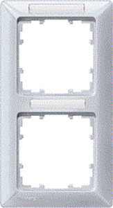 Siemens afdekraam schakelmateriaal, kunststof, aluminium, (bxh) 80x151mm, uitvoering oppervlakte glanzend, montagerichting verticaal, tekstveld/beschrijvingsvlak, 2 eenheden, beschermingsgraad (IP) IP20, 1 eenheden horizontaal, slagvastheid > IK10, RAL-nummer 9006, kwaliteit thermoplast,