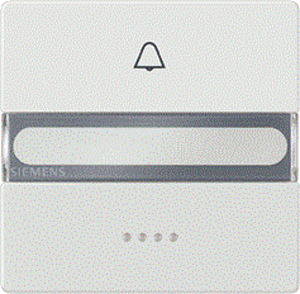Siemens bed.element / centr.pl. schakelmat., kunststof, platina, uitvoering enkele wip, gebruik schakelaar/drukker, uitvoering oppervlakte glanzend, opdruk/indicatie symbool"bel", controlevenster/verlicht, beschermingsgraad (IP) IP20, met indicatieveld, halogeenvrij, kwaliteit thermoplast,