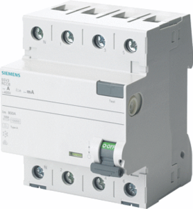 Siemens aardlekschakelaar, 4 polen, type lekstroom A, DIN-rail, nom. (meet)stroom 63A, nom. foutstroom 0.3A, aansluitbare geleiderdoorsnede eend 0.75 - 35mm², nevenapparaat mogelijk, kortsluitvastheid (Icw) 10kA, frequentie 50Hz, beschermingsgraad (IP) IP20,