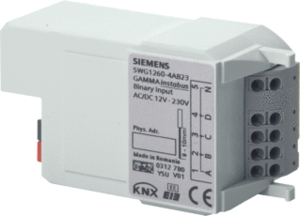 Siemens binaire ingang bussysteem, overig, 4 ingangen, beschermingsgraad (IP) IP20, bussysteem KNX, busaansluiting incl., externe signaalspanning noodzakelij, ingangsspanning 12 - 230V, type ingangsspanning AC/DC