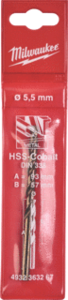 Milwaukee boor (cassette), opnamesysteem cilindrische insteekas, totale lengte 93mm, diameter boor 5.5mm, geschikt voor RVS, snijmateriaal HSS 5 % Cobalt geslepen, geschikt voor staal, geschikt voor hout, geschikt voor gietijzer, geschikt voor kunststof, geschikt voor non-ferro metalen