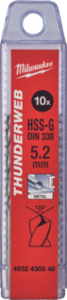 Milwaukee boor, totale lengte 86mm, diameter boor 5.2mm, snijmateriaal HSS blank geslepen, snijvlaklengte 52mm