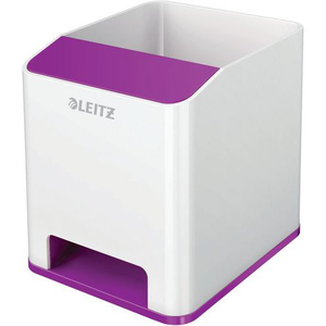 Geef jouw werkplek het WOW effect met deze en andere Leitz WOW producten in opvallende en stijlvolle kleuren Uniek ontworpen pennenhouder - bespaart ruimte op een stijlvolle manier Voldoende ruimte om pennen, potloden, stylus en meer op te bergen Extra compartiment voor je telefoon, zodat je hem nooit meer kwijt bent - 8 cm breed Smartphone compartiment met geluidsversterker - versterkt het geluidsvolume van je telefoon Het scherm van je smartphone blijft volledig zichtbaar wanneer deze in de houder staat Houdt het bureau opgeruimd