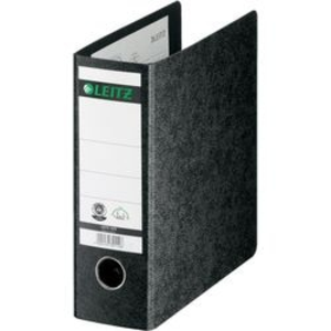 Leitz Ordner. Met etikethouder die geschikt is voor het uitnemen van etiketten. Formaat: A5 Liggend. Duimgat: Ja. Materiaal: Karton. Afmetingen: 230 x 215 x 78 mm (H x B x D). Kleur: Zwart.