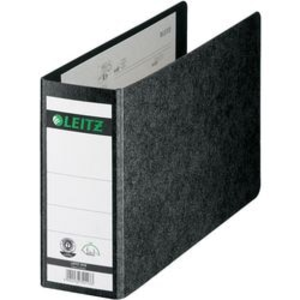 Leitz kartonnen Ordner 1076. Deze 100% gerecycleerd kartonnen kwaliteits ordner is uitgevoerd met een zwarte omslag en is voorzien van een precisiemechanise. De ordner heeft een 180 graden mechanisme met een 50 % grotere opening waardoor er sneller en meer tegelijk kan worden toegevoegd of worden uitgenomen. Daarnaast heeft de ordner een duimgat, randbeschermers, schutblad en een geplakt rugetiket. U heeft op de ordner 5 jaar Leitz garantie. Formaat: A5 liggend. Breedte: 7,7 cm. Pak: 5 stuks. Afmetingen: 174 x 286 mm (B x H).