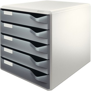 Ladenblok 5 laden, Materiaal: Polystyreen, Kleur: Lichtgrijs, Totale breedte: 285 mm, Totale diepte: 355 mm, Totale hoogte: 290 mm, Aantal vakken: 5, Frame kleur: Grijs