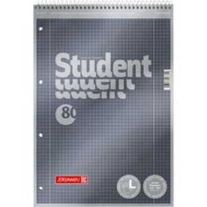 BRUNNEN Student Premium Notitieboek A4 Geruit Spiraalbinding Bovengebonden Karton Grijs Geperforeerd 160 Pagina's 80 Vellen