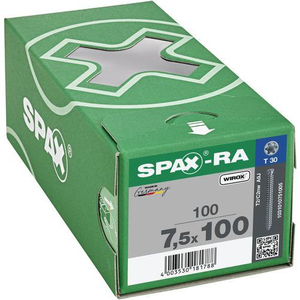 Doos met 100 skeletankers T-Start Plus Wirox TX Ø 7,5 mm, Materiaal: Staal, Schroefdraad Ø: 7.5 mm, Schroef uitsparing: Torx, Type steun: Hout, Vorm van de schroefkop: Cilindervormig, Gebruiksomgeving: Buitenterrein, Lengte schroefdraad: 100 mm, Recyclebare verpakking: Ja - 100%, Gerecyclede verpakkingen: 85 %, Recyclebaar product: Ja - 100%, Gerecycled product: 20 %