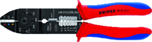 Knipex 9721 perskabelschoentang, diameter 0.5 - 6mm², lengte 215mm, uitvoering/bediening hand, persvorm ovaalpersing, AWG-bereik 20 - 10, knippen, persbereik blauw 1.5 - 2.5mm², persbereik geel 4 - 6mm², persbereik rood 0.75 - 1mm², strippen, uitvoering matrijs vast, voorgeïsoleerd materiaal