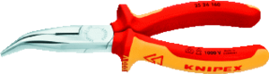 Knipex 2526 telefoontang, lengte 160mm, geïsoleerd, geïsoleerd 1000 V, gebogen, greepuitvoering 2-componenten, VDE getest, gewicht 144g, met zijknipper, oppervlaktebescherming verchroomd