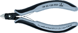 Knipex 7922 zijkniptang, lengte 120mm, geïsoleerd, standaard, oppervlaktebescherming gebruineerd, ESD getest, gewicht 56g, max. knipdiam. zachte draad 1.3mm, max. knipdiam. half hard draad 0.8mm, norm DIN ISO 9654
