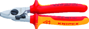 Knipex kabelschaar, uitvoering/bediening mechanisch. eenhand, geschikt voor max. kabeldiameter 50mm, max. kabeldoorsnede 50mm², VDE getest, geïsoleerd, geïsoleerd 1000 V, geschikt voor massieve geleider, geschikt voor meerdraads geleider, greepuitvoering meer-componenten, totale lengte 165mm