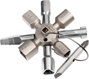Knipex 11 kruissleutel, zink drukgegoten, binnendriekant 7.8.9.10.11.12mm, binnenvierkant 5.6.7.8.9.10.11mm, adapter voor 1/4-inch bits, bit 1/4-inch. sleuf 1x7mm & PH 2, conisch vierkant 6 - 9mm, dubbele baard uitw. Ø 5mm. inw. Ø 3mm, ontluchtingsleutel 1/8-inch CV