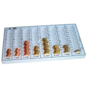 Wedo Geldbord. Vakken voor biljetten: nee. Vakken voor munten: 8. Afmetingen: 31 x 328 x 178 mm (HxBxD). Kleur: grijs.