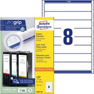 AVERY Zweckform Ordnerrugetiketten L6060-100 Ultragrip Wit A4 192 x 34 mm 100 Vellen à 8 Etiketten