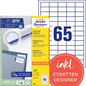 AVERY Zweckform Multifunctionele Etiketten 3666 Ultragrip Wit A4 38 x 21,2 mm 100 Vellen à 65 Etiketten
