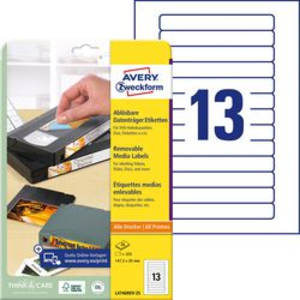 AVERY Zweckform L4746REV-25 Videotape-etiketten A4 Wit 147,3 x 20 mm 25 Vellen à 13 Etiketten