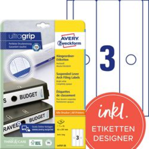 AVERY Zweckform Ordnerrugetiketten L4757-25 Ultragrip Wit A4 63 mm 25 Vellen à 3 Etiketten