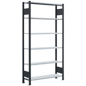 Stelling Aristo-Clip, Max. belasting per legbord: 150 kg, Materiaal: Staal, Hoogte: 2000 mm, Aantal legborden: 6, Type legbord: Massief, Breedte: 1000 mm, Diepte: 600 mm, Coating: Epoxy, Type element: Basis, Model: Dubbelzijdige toegang (voor/achter), Type juk: Open, Kleur juk: Zwart, Legbord kleur: Lichtgrijs, Stelling voor: Archiefdozen, Configureerbaar: ja, Bereik stelling: Aristo-Clip, Afstand verstelbaarheid: 25 mm, Montage: Zelfbouw, Montagesysteem: In elkaar te schuiven systeem, Type legbord: Plaatstaal met centrale aanslag, Aantal voeten: 4, Materiaal legbord: Staal, Materiaal kruisschoor: Staal, Aantal jukken: 2, Type stelling: Kantoorstellingen