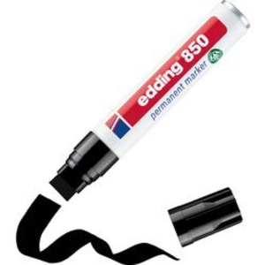 Edding permantent marker 850. Deze permanent marker met een rechte acrylpunt beschikt over een aluminium houder met dop uit polypropyleen en is voorzien van sneldrogende, wis- en waterbestendige inkt op alcoholbasis. Tevens is deze inkt milieuvriendelijk en ideaal voor permanent beschrijven, markeren en inkleuren op elke ondergrond. Punt: ultra, 5-16 mm. Kleur: zwart.