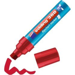 Edding Flipchartmarker 388. Ideaal voor voor het schrijven en markeren op flipchart papier, presentatiepapier en kaarten. Inkt dringt niet door het papier. Kan tot 6 weken zonder dop. Penpunttype: Beitelvormig. Lijnbreedte: 4-12 mm. Kleur: Rood.