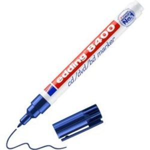 Edding CD-marker 8400 4-8400 003. Deze CD-marker met zachte ronde punt is voorzien van permanente geurloze pigmentinkt. Tevens is deze marker geschikt voor het schrijven van tekste op cd´s en cd-rom´s. Punt: breed, 1,0 mm. Kleur: blauw. Pak: 10 stuks.