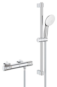 Grohe GROHTHERM 1000 PERFORMANCE douchemengkraan (opbouw) mechanisch, chroom, uitvoering temperatuurregeling thermostatisch, met douchegarnituur, met koppelingen, oppervlaktebescherming gecoat, oppervlaktebehandeling gepolijst, temperatuurbegrenzing, hartafstand 150mm, kraan messing,