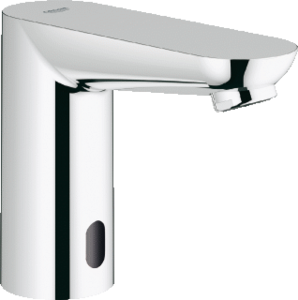Grohe Euroeco Cosmopolitan E wastafelmengkraan (opbouw), chroom, uitvoering elektronisch, 1-gats kraangaten, uitvoering uitloop vast onder, kraanmondstuk schuimstraalmond, oppervlaktebescherming verchroomd, kraan messing, oppervlaktebehandeling gepolijst, type uitloop vormgeperst,