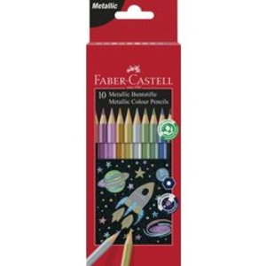 Faber-Castell kleurpotloden metallic Hexagonaal. Schrijfkleur: metallic. Onbreekbaar: ja. Gum:nee. Kleur: Kleurenassortiment. Hoeveelheid: pak 10 stuks.